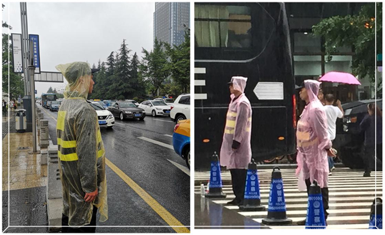 連日來的強(qiáng)降雨,加劇了執(zhí)勤的難度。保安隊員們頂著狂風(fēng)暴雨,從容不迫地在園區(qū)各條道路和重要路口上維護(hù)秩序、疏導(dǎo)交通、護(hù)送老人、為參觀者指路、引導(dǎo)車輛有序停放,即停即走......盡管雨越下越大,保安員們依舊身著濕透的保安服堅守在自己的工作崗位。他們的身影也成為數(shù)博會現(xiàn)場一道亮麗的風(fēng)景線。