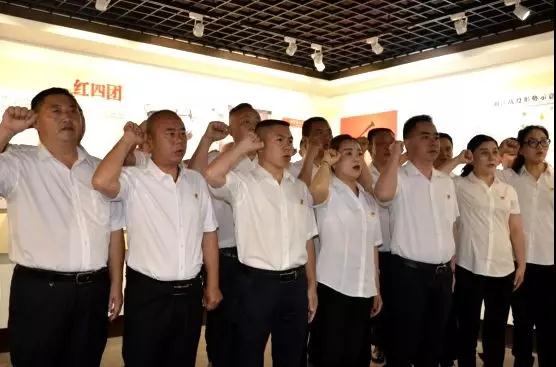 在陳列館內(nèi),陳春生書記帶領(lǐng)全體黨員、入黨積極分子面對(duì)黨旗重溫了入黨誓詞,鏗鏘的誓言響徹在紀(jì)念館內(nèi),使每位黨員再一次接受了心靈的洗禮,堅(jiān)定了初心,牢記了使命。