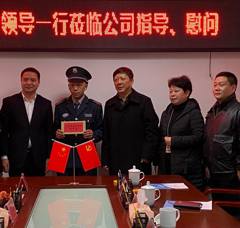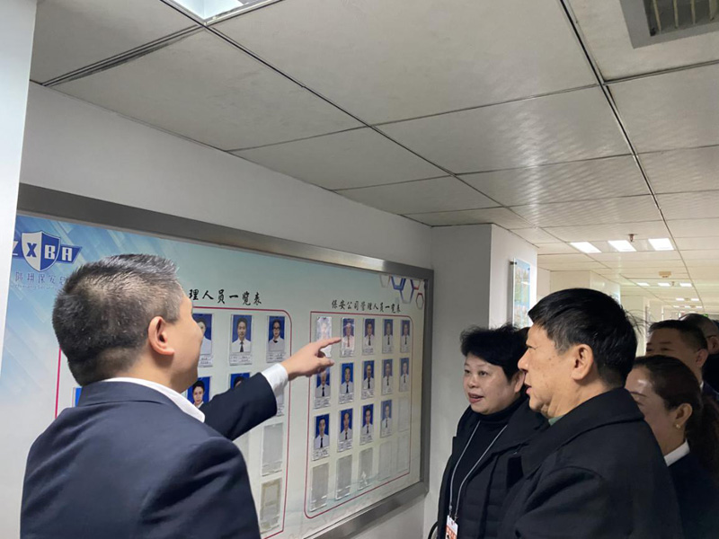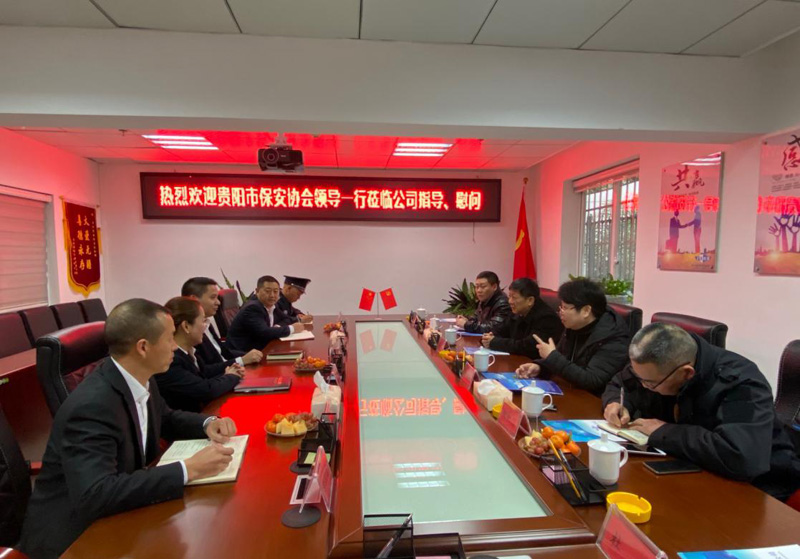 2020年1月17日上午九點十分,貴陽市新成立的保安協(xié)會會長劉毅一行到貴州陟翔保安有限公司進行指導(dǎo)、慰問,總公司總經(jīng)理馮波、常務(wù)副總張小慶、黨支部書記李明澤、保安公司一區(qū)域經(jīng)理劉帆及相關(guān)部門同志陪同。