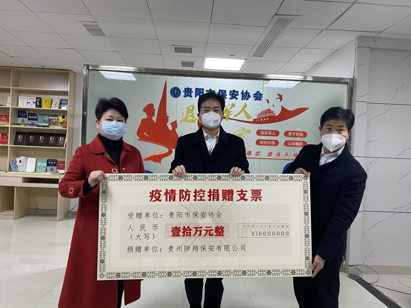 2020年2月5日上午,貴州陟翔保安有限公司向貴陽市保安協(xié)會捐贈儀式在貴陽市保安協(xié)會舉行,貴陽市保安協(xié)會常務(wù)副會長羅越利、副會長孫輝、貴州陟翔保安總公司股東羅仕銀、貴州陟翔保安有限公司總經(jīng)理陳春生以及有關(guān)人員參加捐贈儀式。