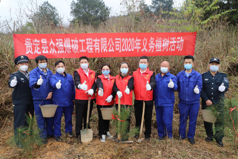上午十點,在貴定縣眾強爆破工程有限公司庫房、銅仁鑫安爆破工程有限公司庫房分別展開了植樹活動,總公司股東代表羅仕銀、總公司總經(jīng)理馮波、總公司常務(wù)副總張小慶、總公司副總經(jīng)理余艷、總公司黨支部書記李明澤、分公司領(lǐng)導(dǎo)班子以及黨員干部參加義務(wù)植樹活動。植樹現(xiàn)場,大家揮動鋤頭、鐵鏟,提桶運水,一起植樹造林。大家滿懷熱情,卯足干勁,有的挖坑、運樹,有的扶苗、栽植,有的培土、澆水,銜接有序、配合默契,共栽植松樹、香樟樹等樹木30余棵,為初春的大地種下了一片新綠。