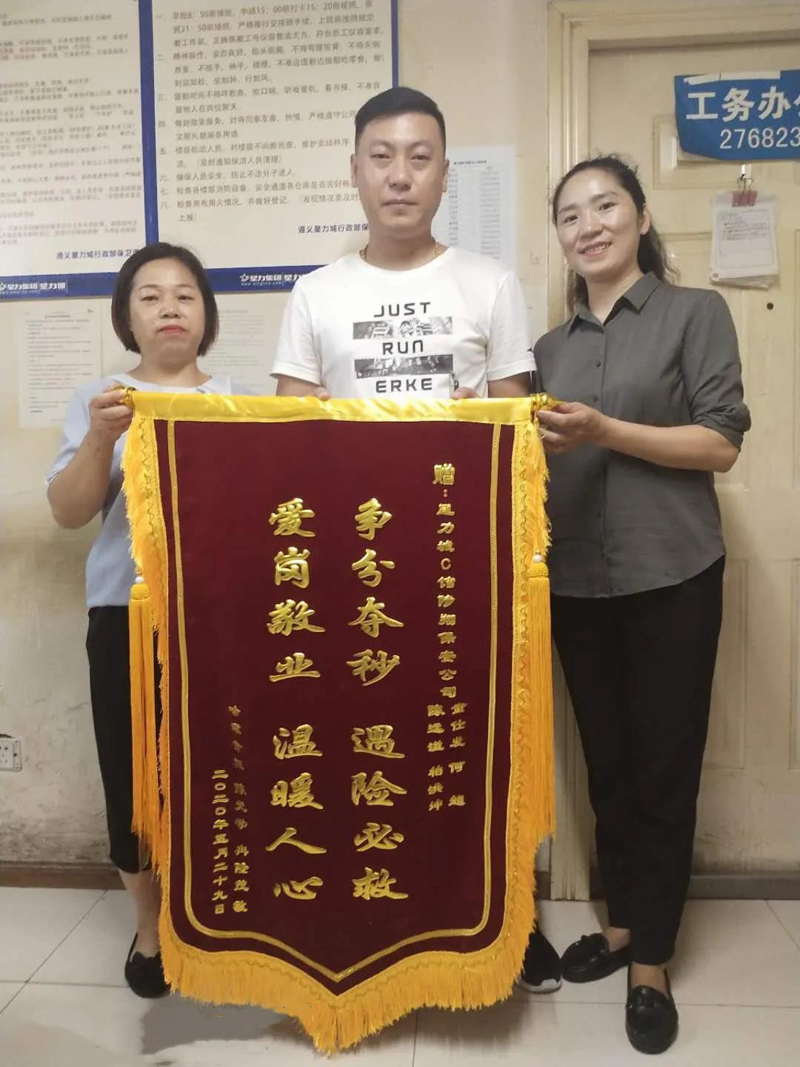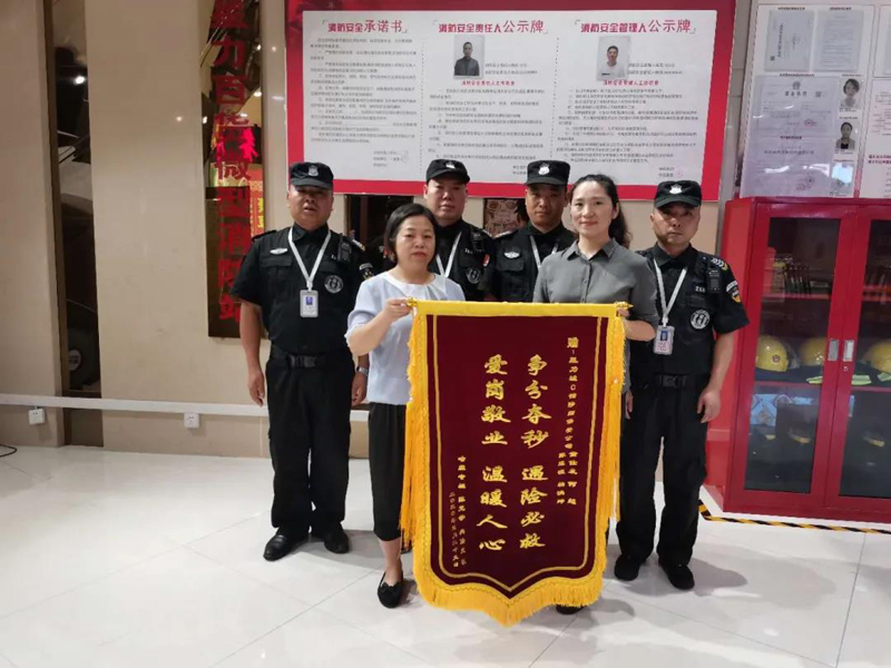 經(jīng)半個多月的治療,患者于2020年7月7日康復(fù)出院。出院后,患者在家屬的陪同下,將一面印有“爭分奪秒、遇險必救、愛崗敬業(yè)、溫暖人心”的錦旗送至我公司駐點星力城保安隊員手中,并再三表示感謝。隊員們紛紛表示:“這是我們的份內(nèi)之事,我們的職責(zé)就是為業(yè)主和客人的安全保駕護航”。