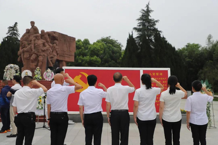 參觀結(jié)束后,全體黨員在紀(jì)念碑處重溫入黨誓詞,用心感受革命先烈們?cè)谶@里用熱血做出的斗爭(zhēng)和用生命抒寫的初心和使命。