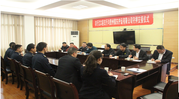 經(jīng)過半年的業(yè)務(wù)對(duì)接和洽談,銅仁本部于11月16日至20日正式接手德江、石阡、印江、江口、松桃五縣農(nóng)業(yè)銀行守押業(yè)務(wù)。銅仁市公安局保安大隊(duì)大隊(duì)長(zhǎng)王世軍、銅仁市農(nóng)行副行長(zhǎng)任達(dá)輝、銅仁市農(nóng)行保衛(wèi)部經(jīng)理?xiàng)蠲汀€~仁本部總經(jīng)理陳葉、副總經(jīng)理劉興華、劉樹等出席了五縣守押業(yè)務(wù)交接儀式。