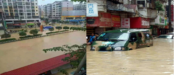 7月14日晚,松桃縣普降特大暴雨,由于強度高、持續(xù)時間長,引發(fā)有大水記錄以來的最大洪災。凌晨5時許,最高洪峰經(jīng)過松桃縣城,導致縣城部分街道被淹,多條道路中斷,停水停電。