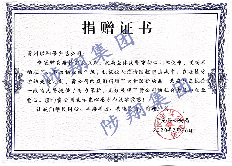 捐贈(zèng)證書